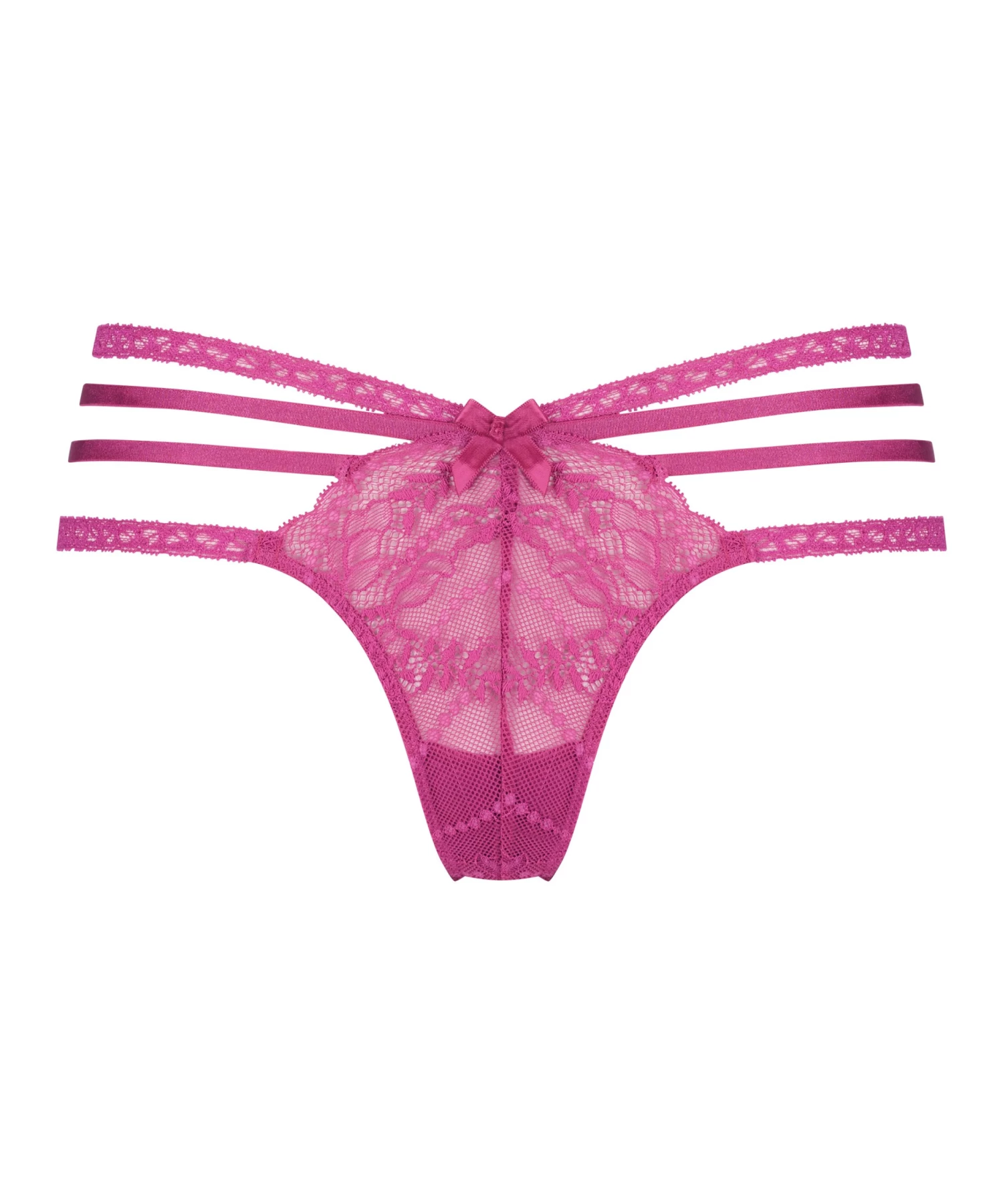 Voel je super sexy in deze string! Hij is voor een groot deel van kant, er zit een leuk strikje aan de voorkant en de strappy details zijn de finishing touch. Combineer met je eigen favoriete items!