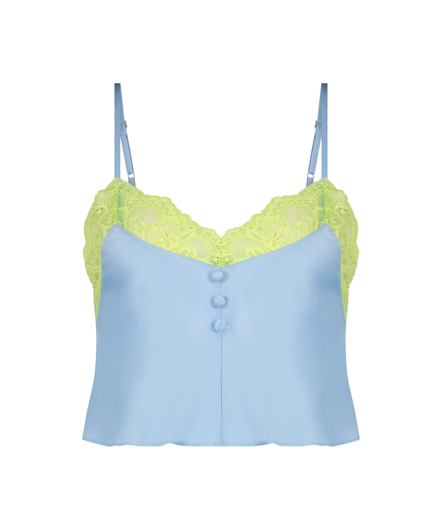 Deze top is gemaakt van mooi satijn en aan de bovenkant afgewerkt met kant. Met verstelbare bandjes op de rug en knoopjes aan de voorkant. Combineer hem met bijpassende items voor een complete outfit! Onderdeel van onze P.O.P. Collectie Power of Positivity. Dit is een inspirerende en energieke collectie met een ’think positive’ instelling. Power Of Positivity koestert eigenwaarde, diversiteit en een bewuste levensstijl.