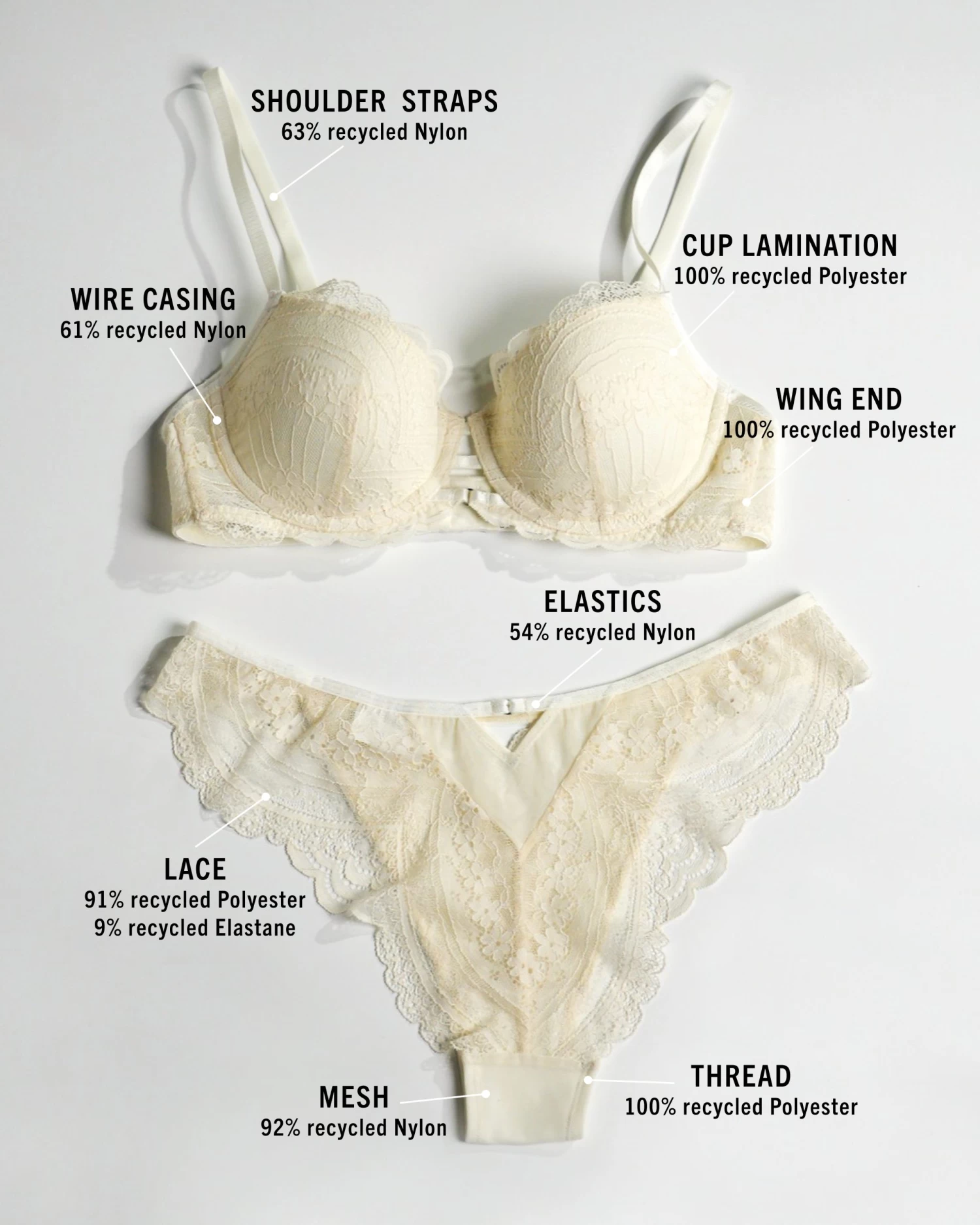 Alle textielcomponenten in dit product zijn gemaakt van 30-100% gerecycled materiaal